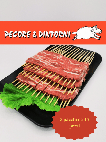 Pacco Arrosticini ovino da 45 pezzi per 3 (circa 3,3/3,5 kg di arrosticini classici).