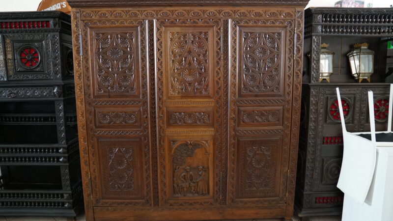 Armadio d’epoca lavorato , a tre ante e ripiani 193×200