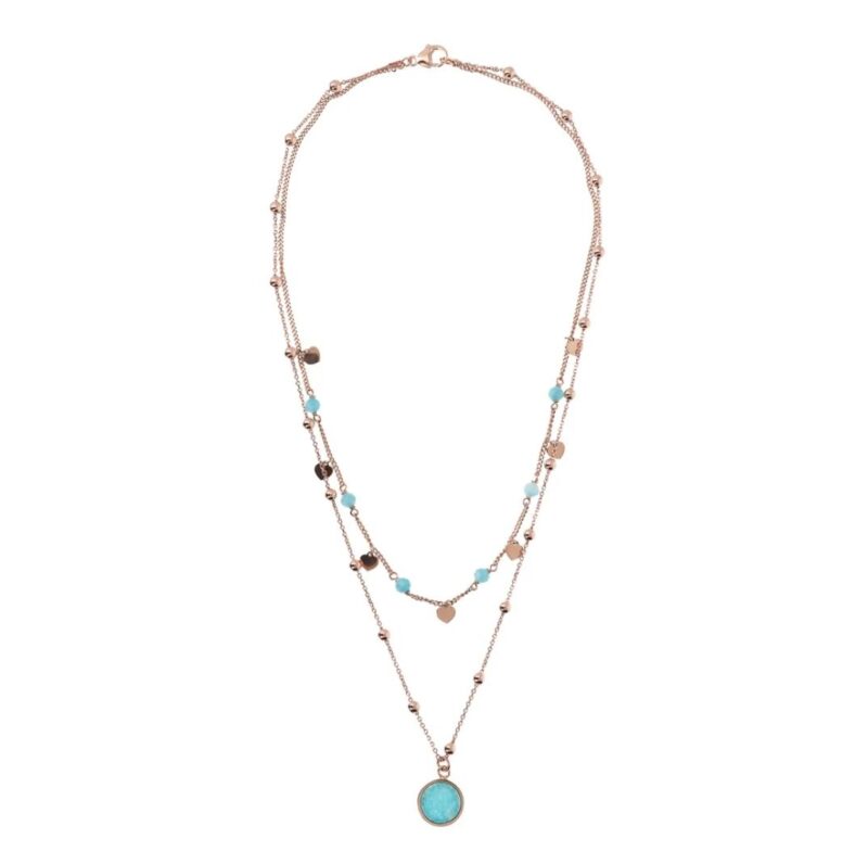 Bronzallure – Collana Due Fili con Pietra Naturale e Cuori