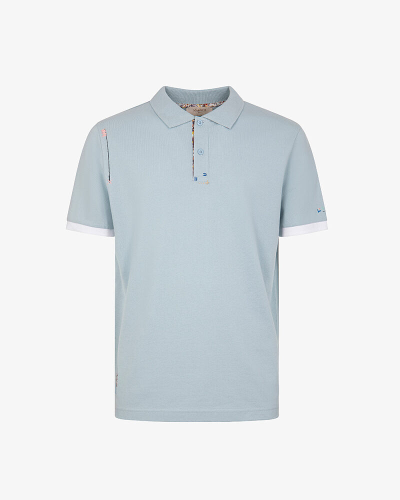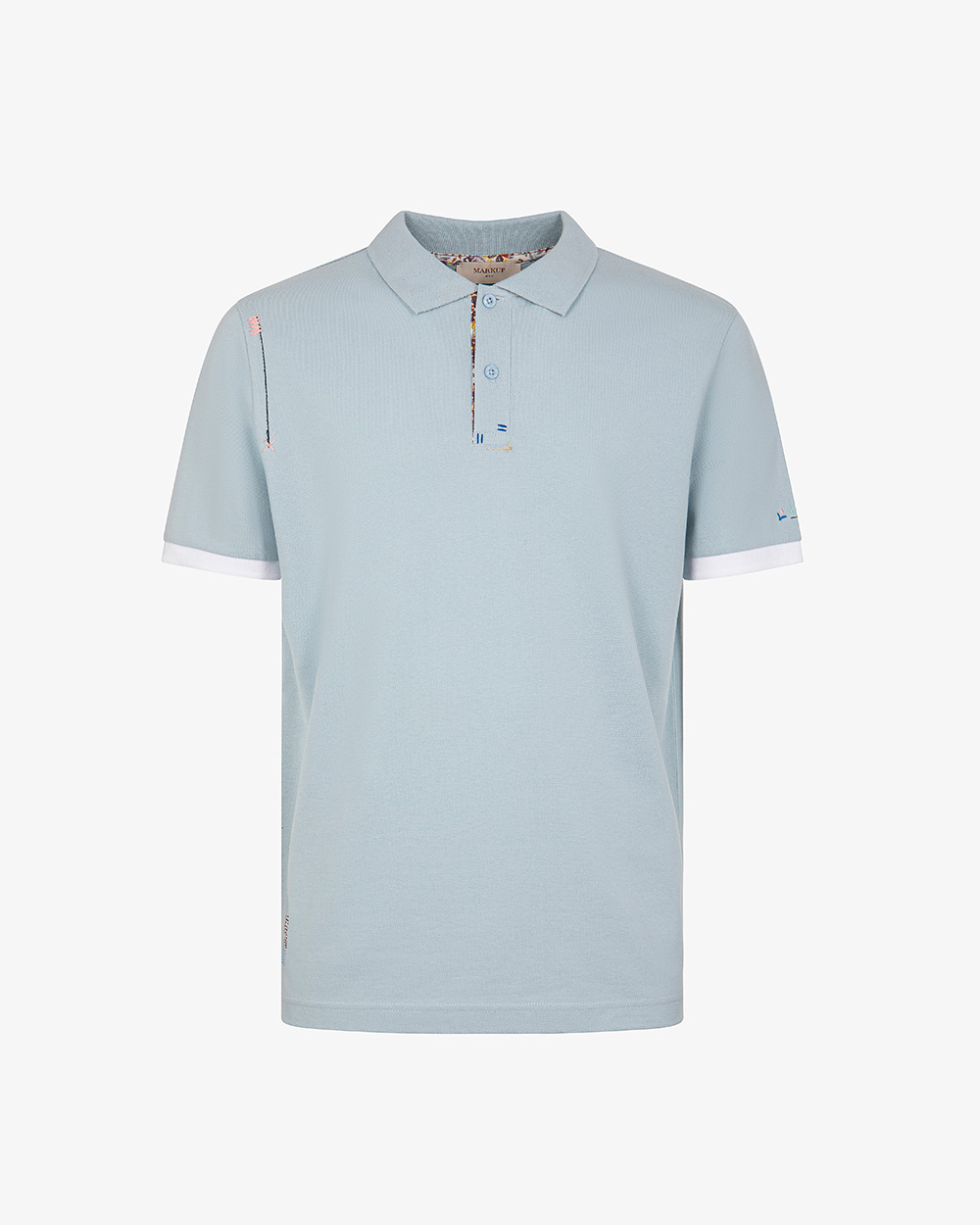 Polo picquet mezza manica con polsi in contrasto e ricami dettaglio tessuto stampato rifiniture collo