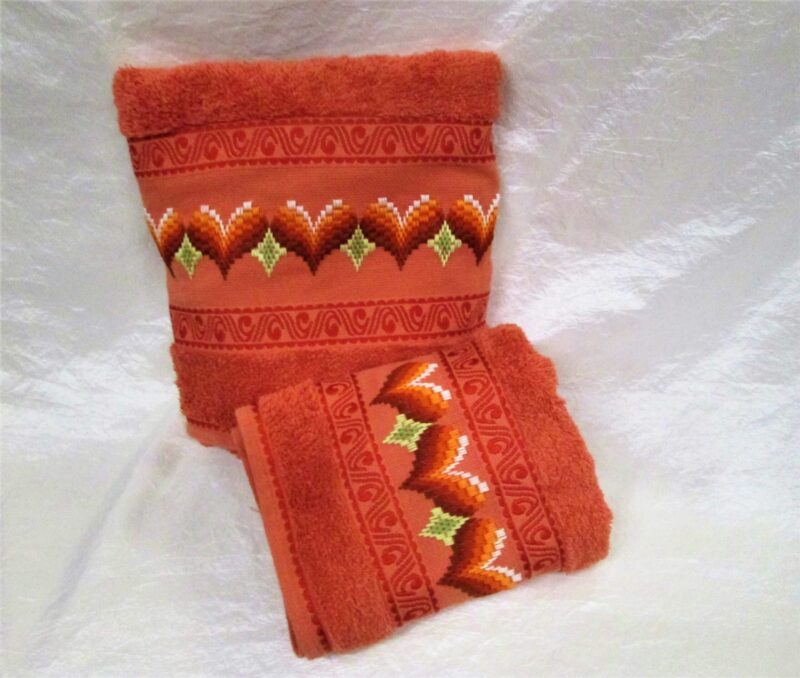 L’asciugamano piccolo misura cm 40×60 e l’inserto in Aida è alto circa cm 6