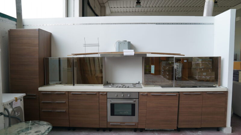 completa di Forno, frigo, doppio pozzetto lavello e cappa in acciaio lunghezza 420 cm come da foto