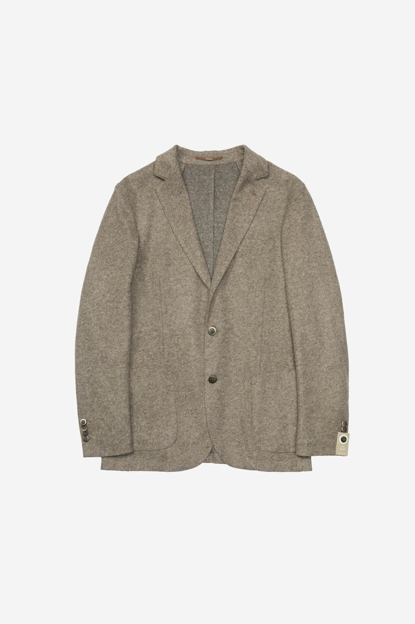 Giacca a due bottoni con tasche a toppa, realizzata in flanella misto lana.