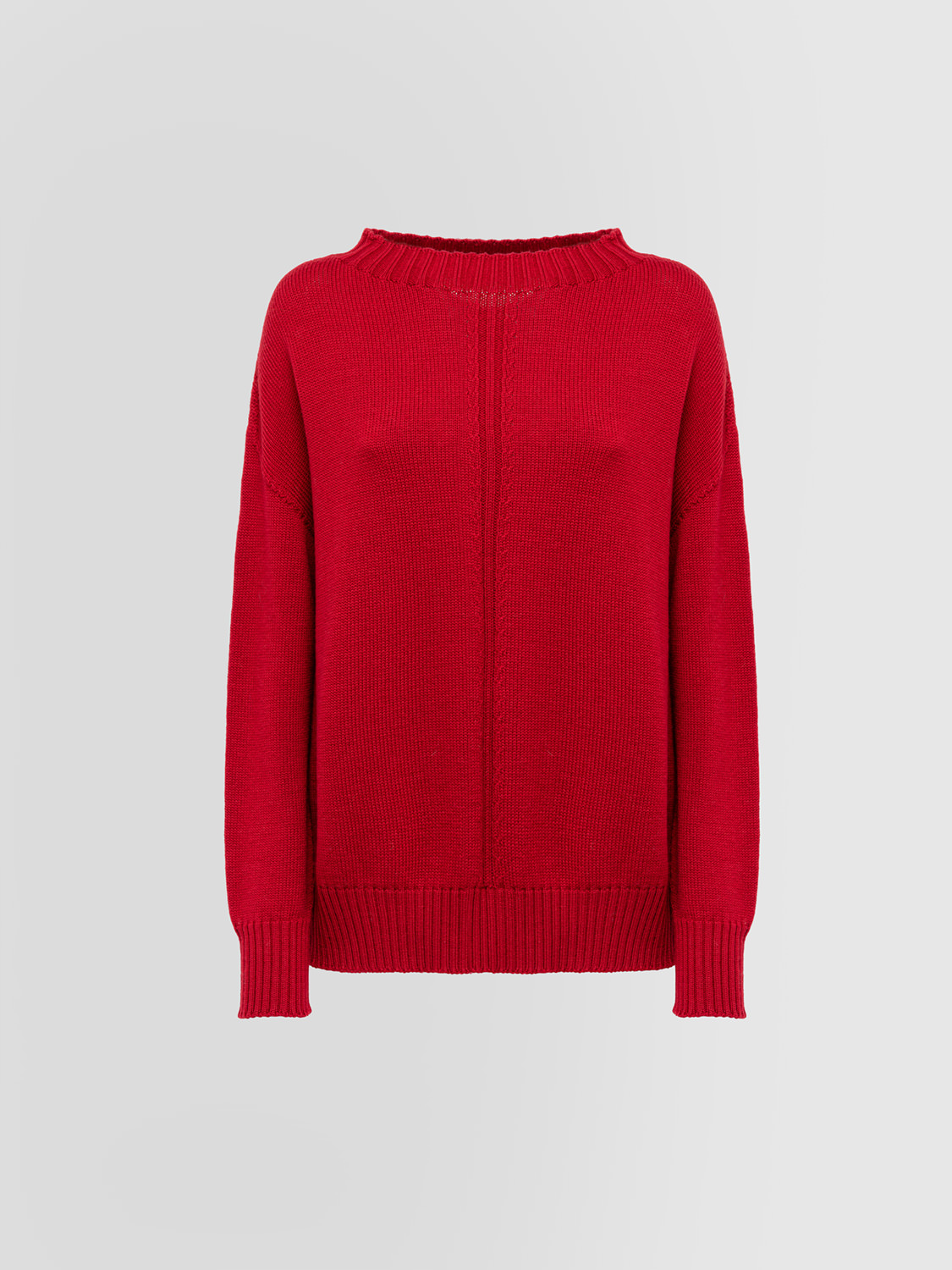 Girocollo in lana merino integrale tinta unita. Dettaglio costa centrale. Manica lunga. Collo, fondo maglia e polsi in costa. Spacchi laterali. Regular fit. COMPOSIZIONE: 100% LANA.