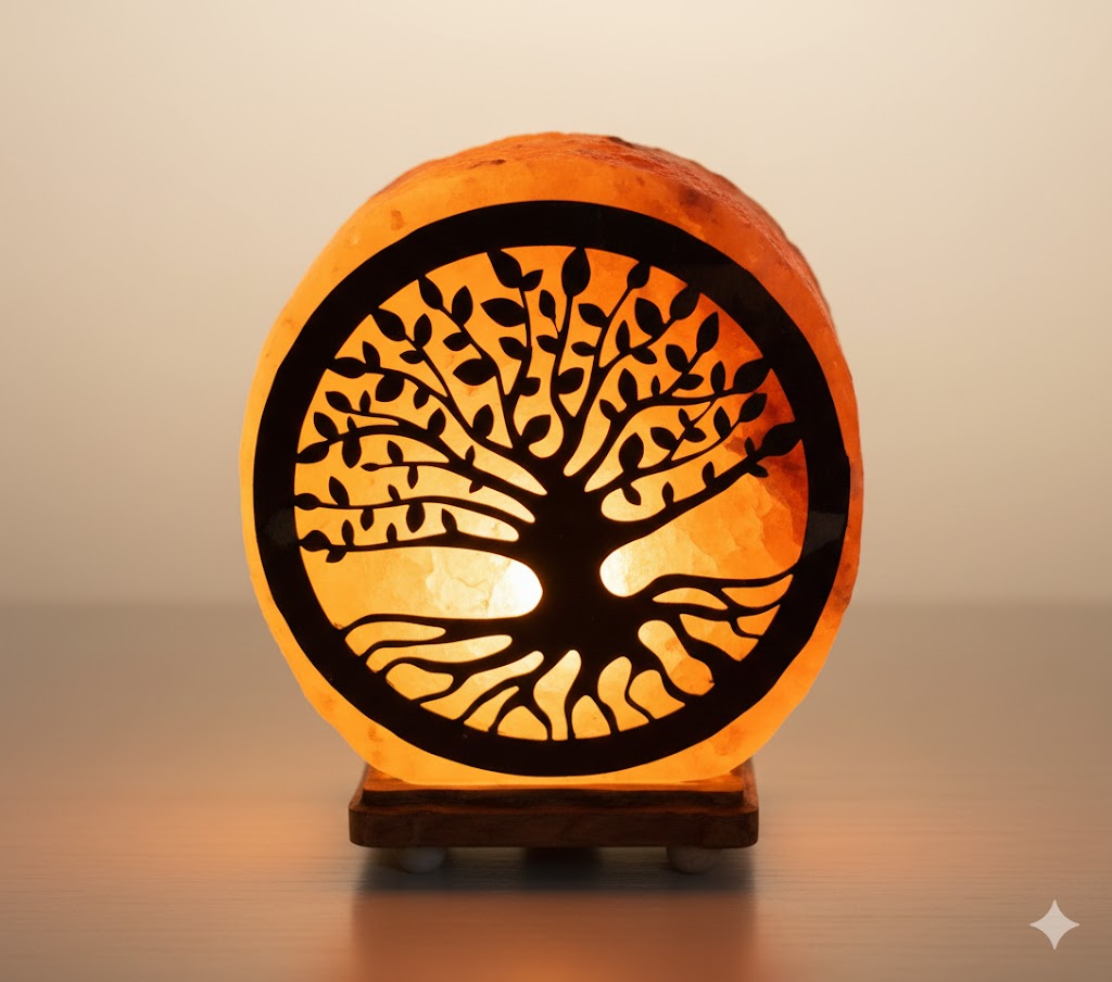 Lampada in Sale Rosa dell’Himalaya – Incisione “Albero della Vita” 5Kg