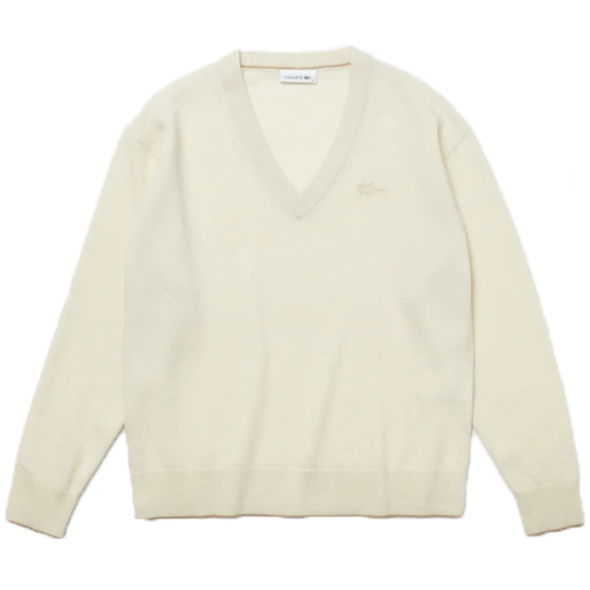 Un pullover iconico con scollo a v con cui rinnovare i modelli classici presenti nel proprio guardaroba. Linee eleganti e finiture tono su tono a costine conferiscono un tocco raffinato a questo bellissimo capo femminile morbido e caldo, realizzato in jersey di lana. Lo stile casual di questo modello imprescindibile è completato da un raffinato coccodrillo ricamato sul petto.
