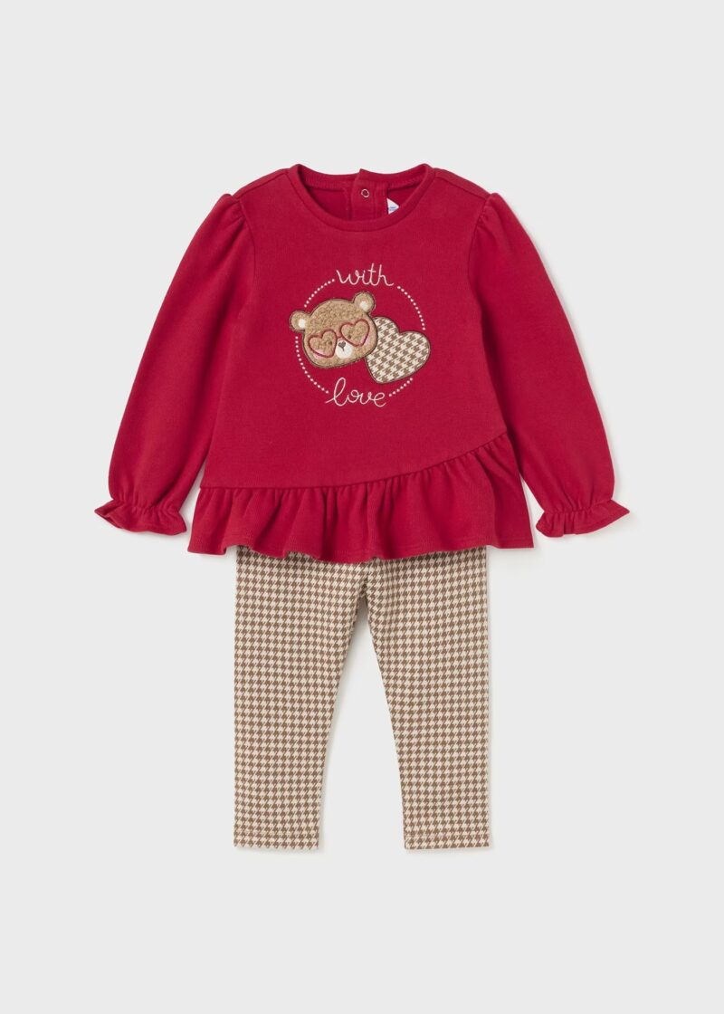 PULLOVER Esterno: 57% Cotone, 38% Poliestere, 5% Elastan. LEGGINGS Esterno: 54% Poliestere, 42% Cotone, 4% Elastan.