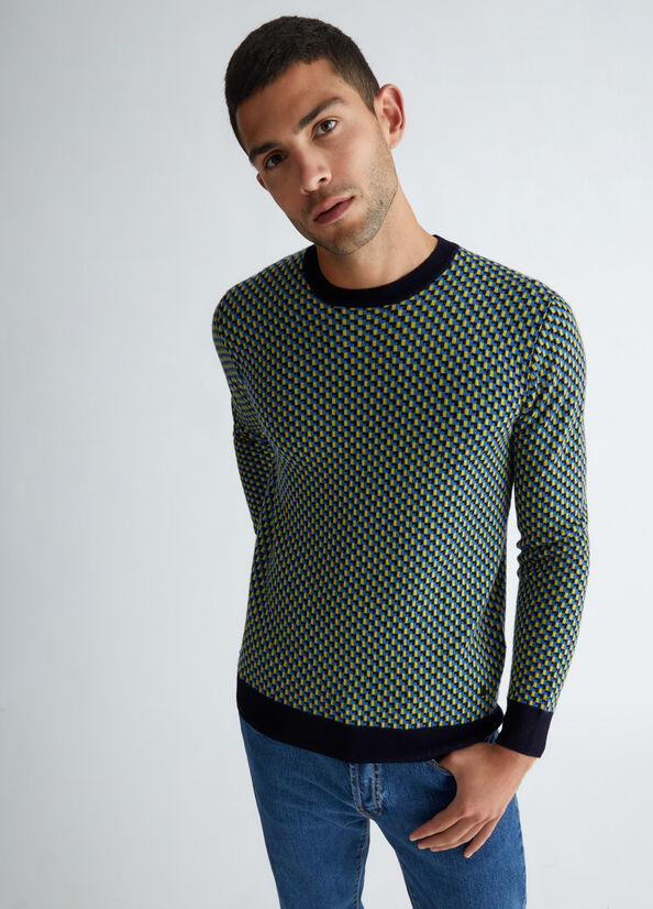 Pullover da uomo Girocollo Filati in pura lana Lavorazione jacquard geometrica