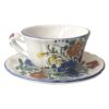 Tazza latte con Piattino decoro Fioraccio policromo realizzato e decorato a mano con metodi artigianali.