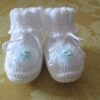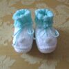 La scarpina bianca è rifinita con un fiorellino in tulle color verde acqua.