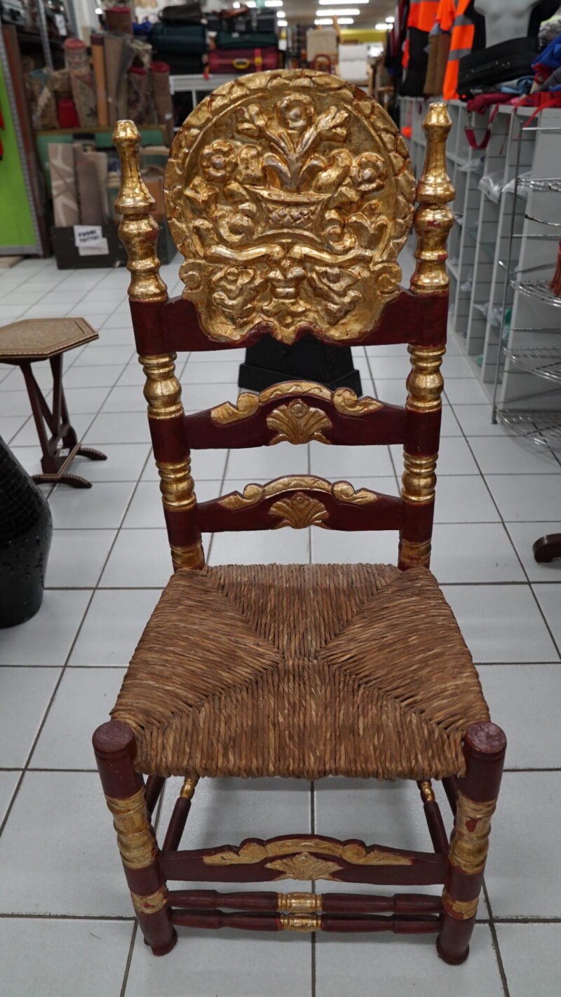 Sedia tipo Trono Spagnola di faggio decorata in foglia d’oro
