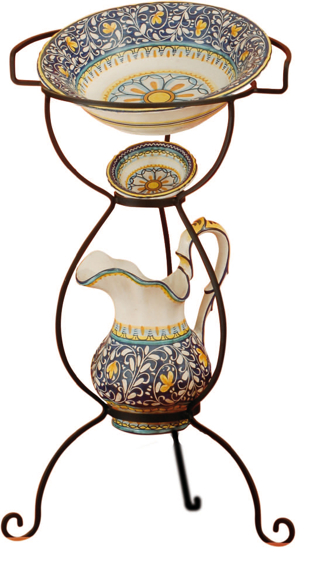 Set Lavabo Ceramica di Castelli – Brocca, Catino e Supporto Ferro cm 80