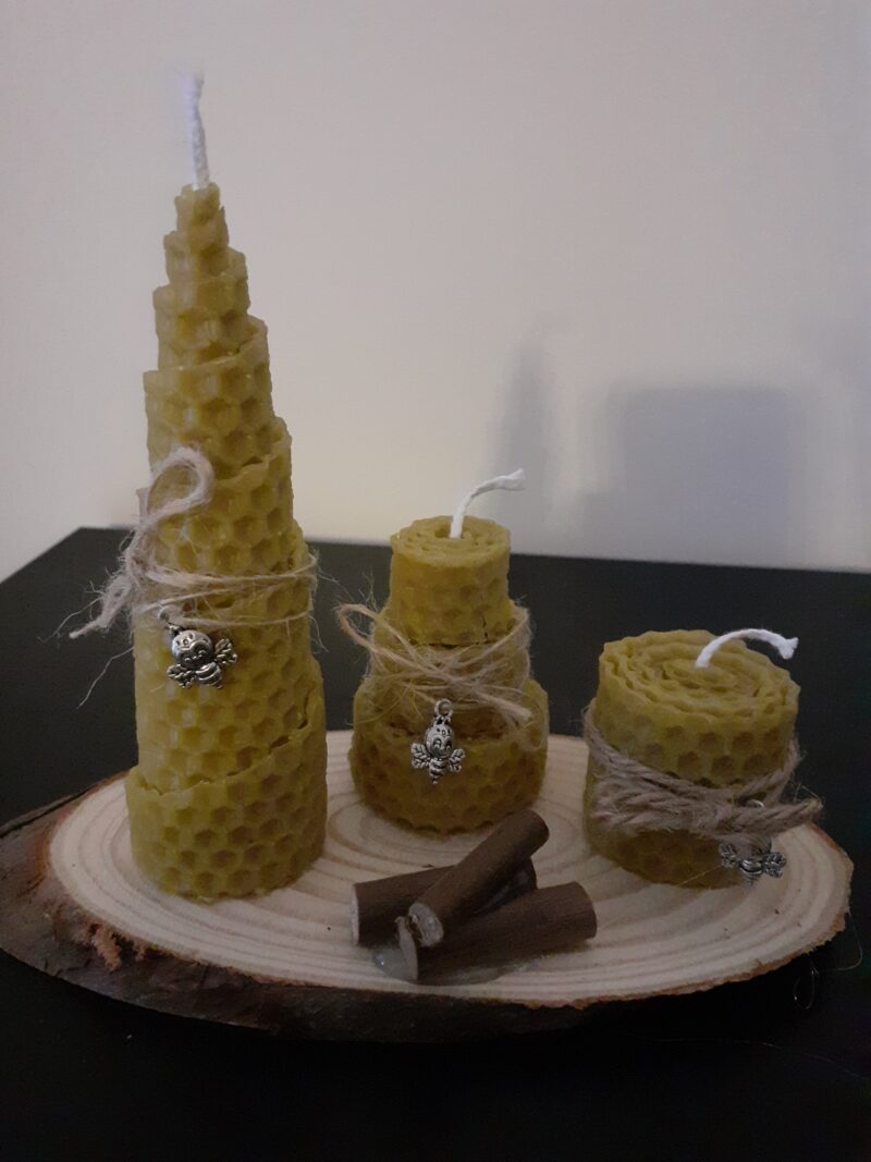candele realizzate con il fondo delle arnie. set da tre pezzi