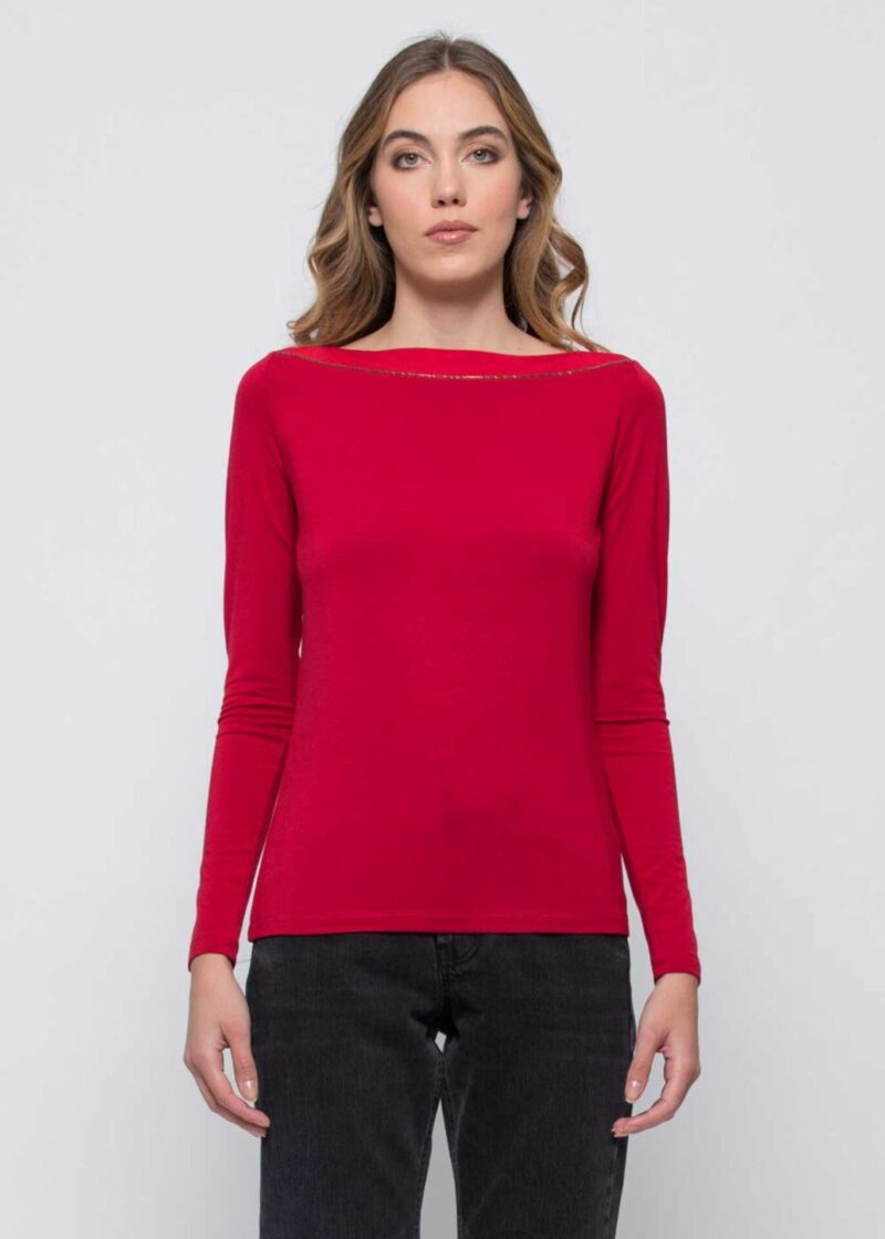 T-SHIRT MANICA LUNGA CON SCOLLO A BARCA E DETTAGLIO AL COLLO